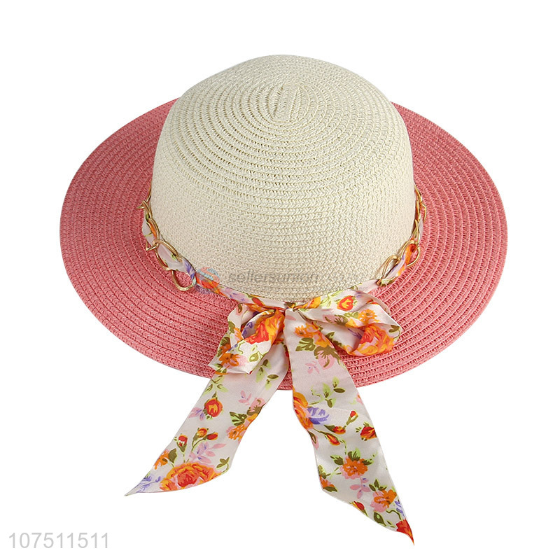 Wholesale fashion women summer ribbon straw hats sun hat