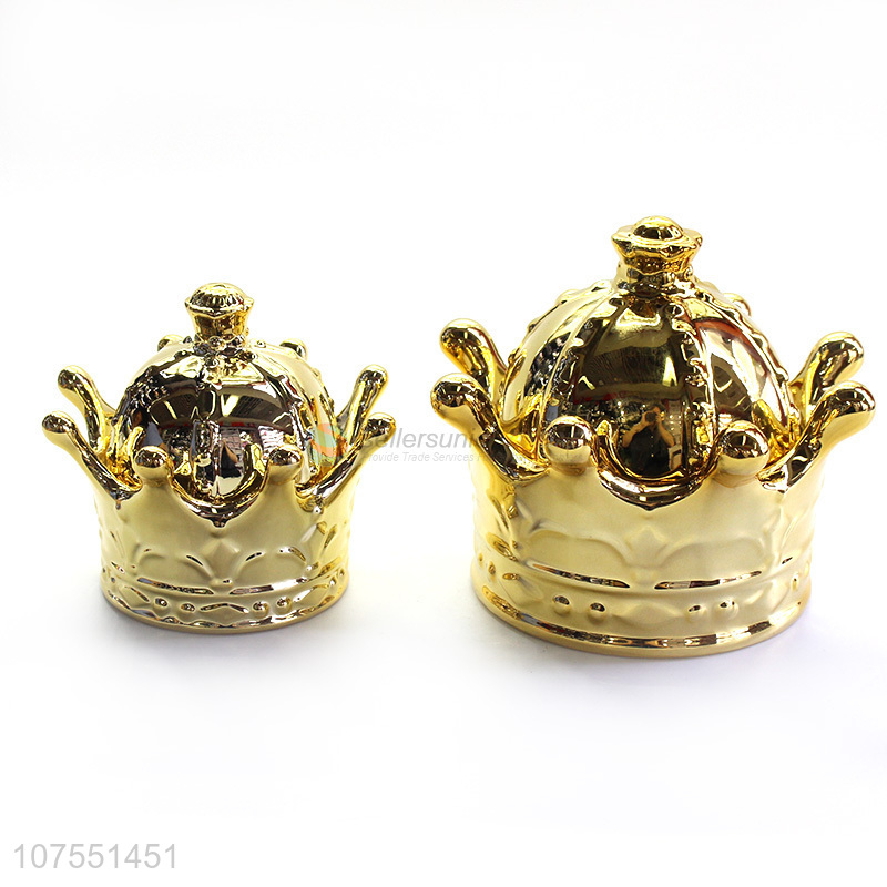 Wholesale Unique Design Crown Shape Ceramic Ornaments With Lid For Home Decor