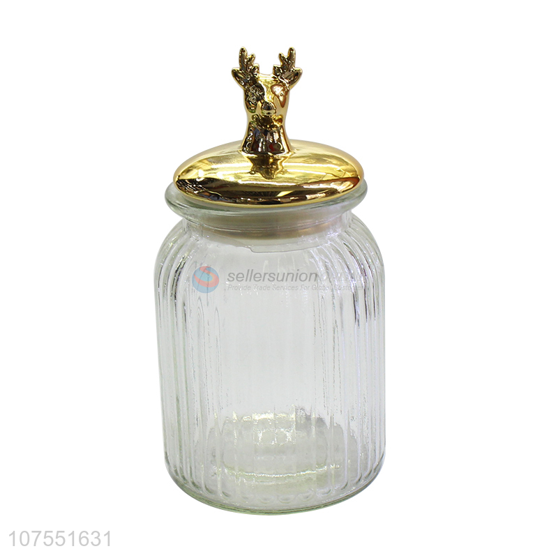 Cheap Price Clear Glass Storage Jar With Gold Deer Ceramic Lid