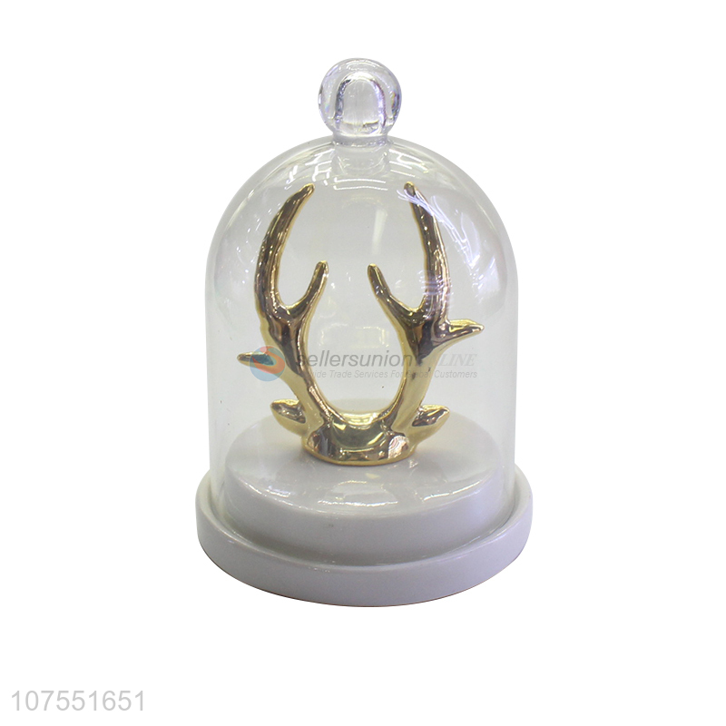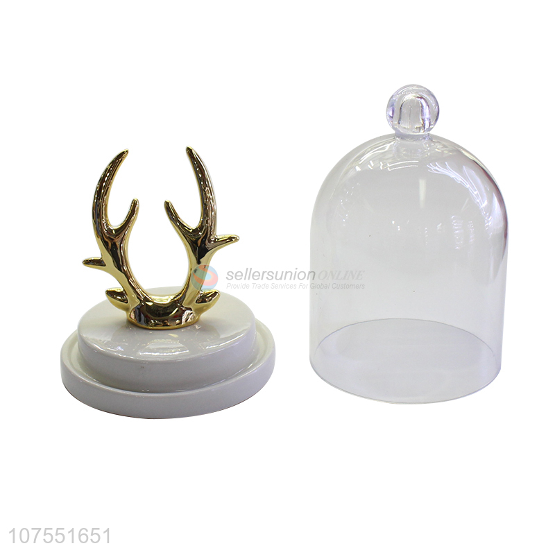 Best Sale Modern Simple Deer Design Ceramic Crafts Jewelry Ring Holder With Glass Lid