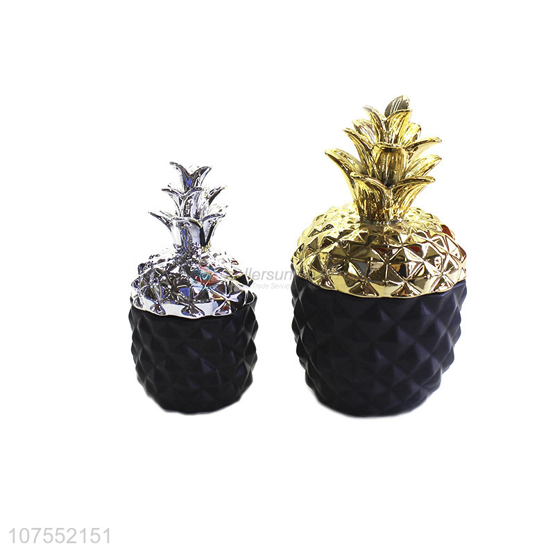 Hot Style Exquisite Home Decoration Pineapple Shape Ceramic Ornaments With Lid