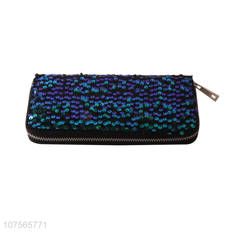 Bottom price ladies sequin purse women pu leather long wallets