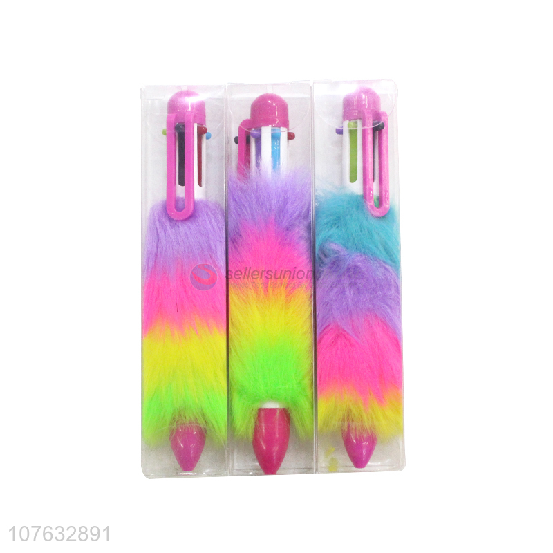 New Arrival Colorful Fluffy Plush Multicolored Ball Point Pen