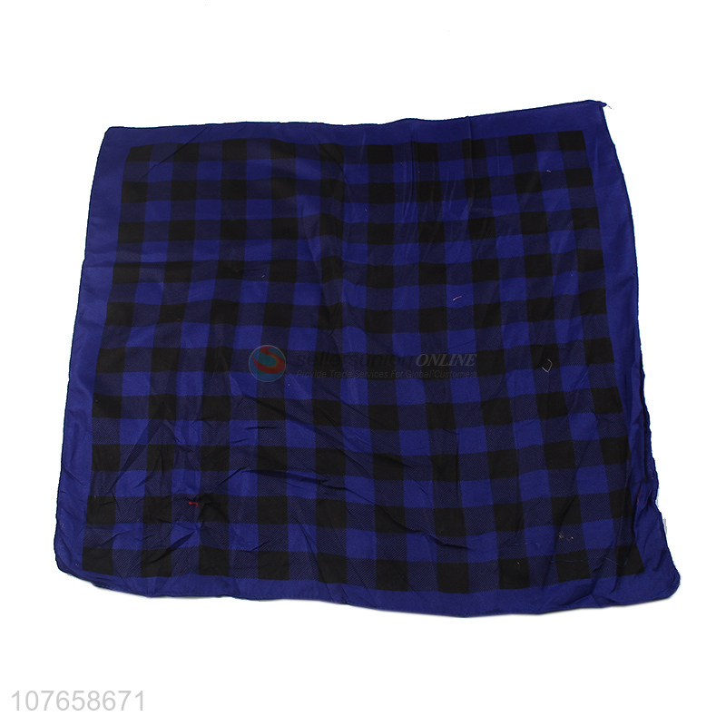 Simple and generous blue and black square lattice square scarf