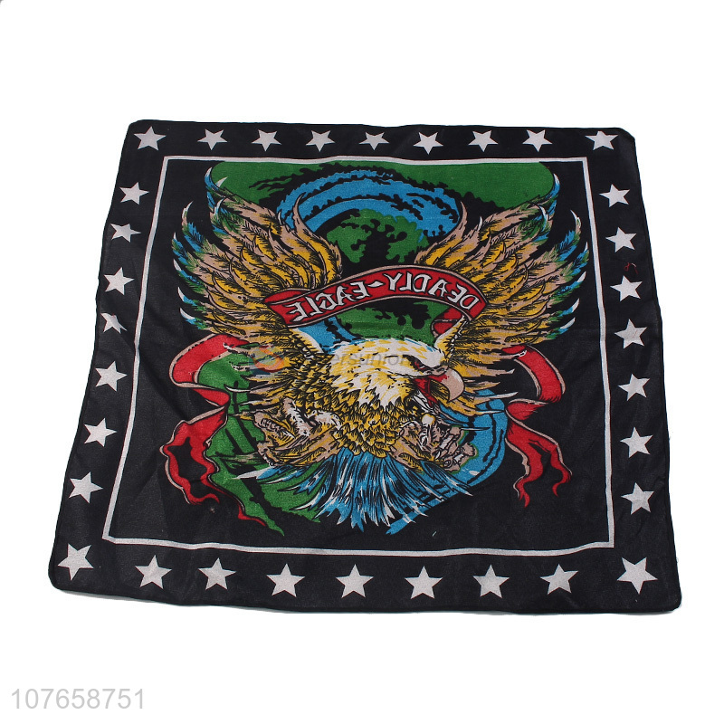 Good quality printing and dyeing turban black flying eagle decoration square scarf