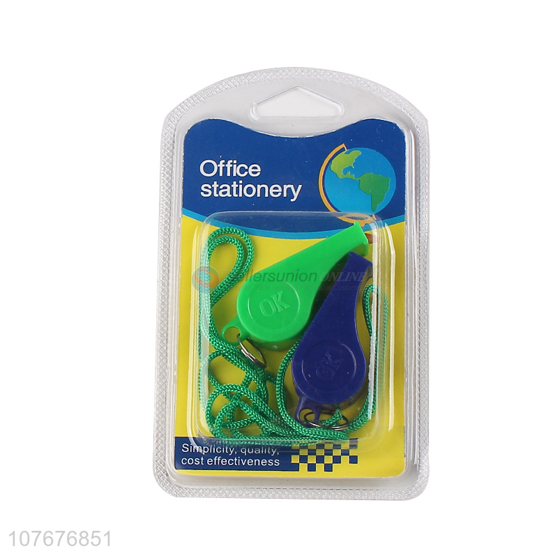 Hot sale plastic toy football sport whistle with string