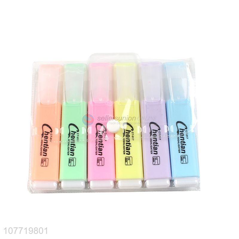 Hot Sale 6 Pieces Highlighter Marker Color Fluorescent Marker Pen Set