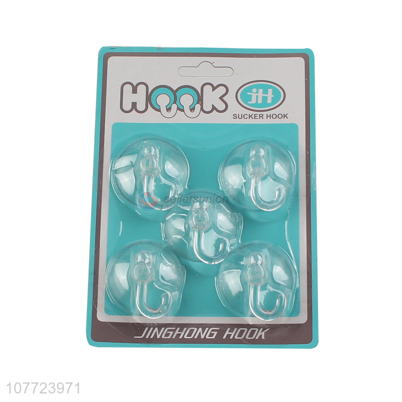Hot products 5 pieces transparent strong hold plastic sucker hook wall hanger