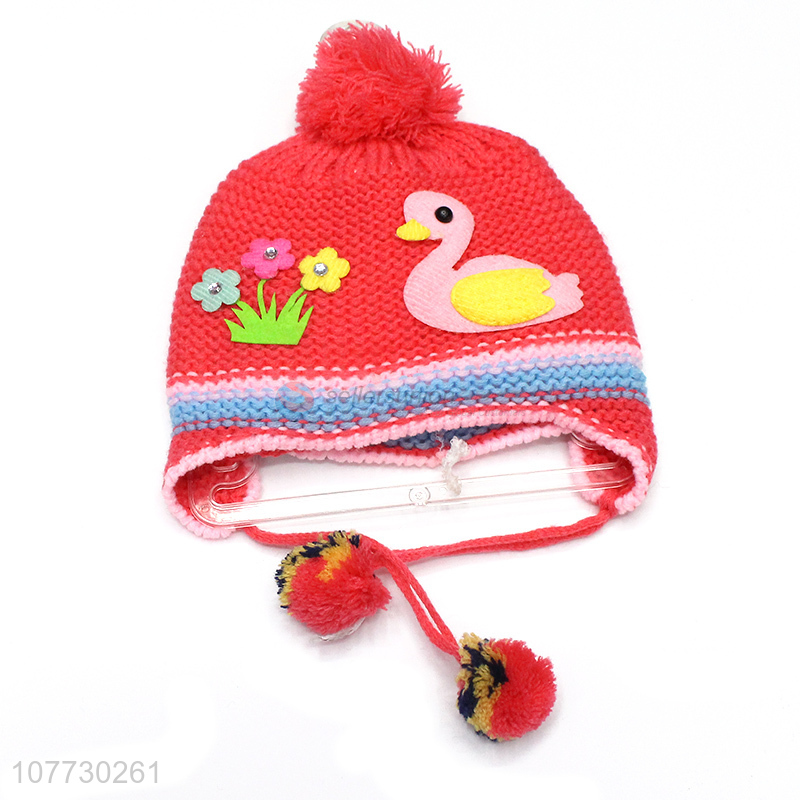 Factory price kids winter cuffed beanie caps children pompom hat