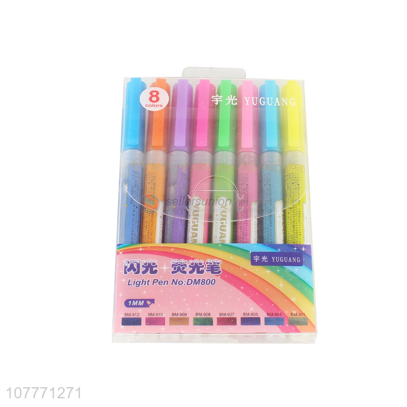 Best Selling 8 Pieces Light Pen Highlighter Marker Pen Set