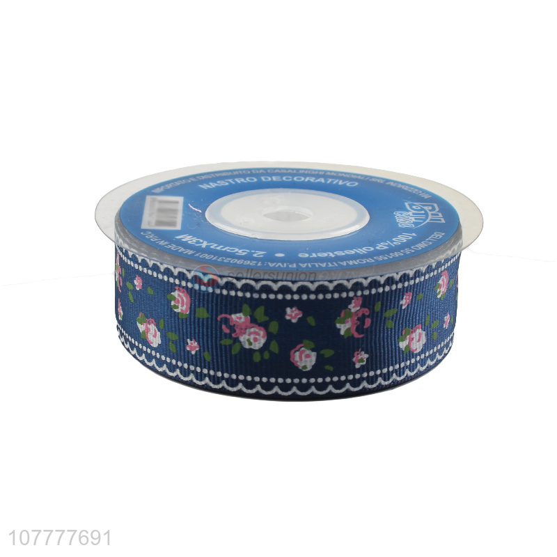 Factory supply 25mm flower pattern grosgrain ribbon gift ribbon