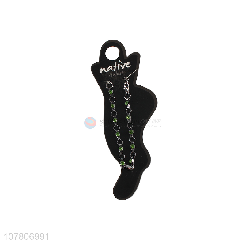 China wholesale all-match green diamond ladies anklet