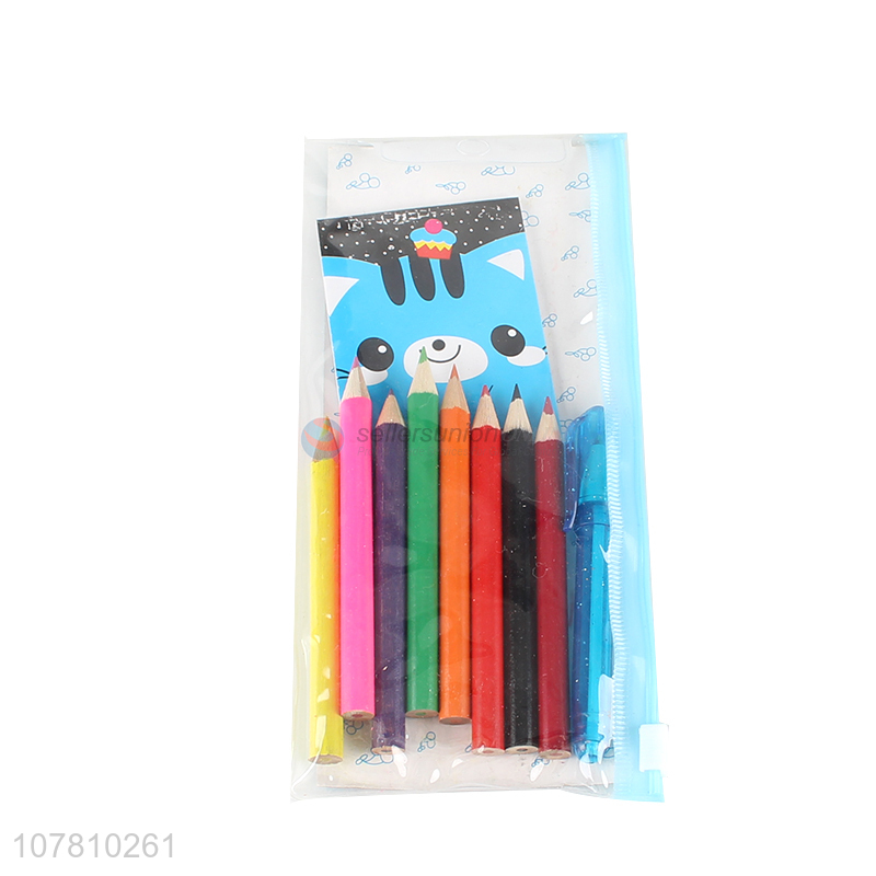 Promotional kids stationery set mini notebook color pencils ball pen