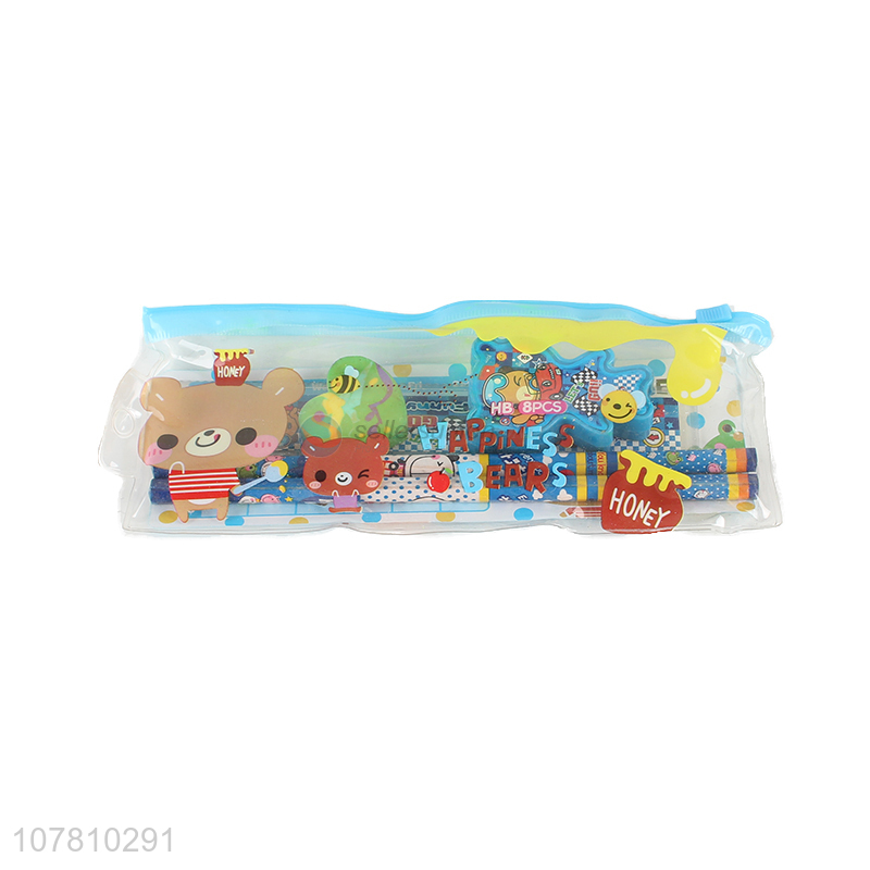 Wholesale stationery set wooden pencil and pencil sharpener set