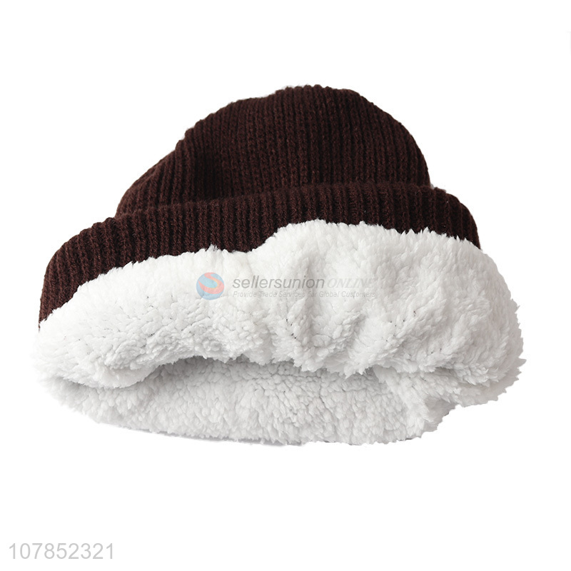 Low price men women winter hats fleece lined knitting beanie hat