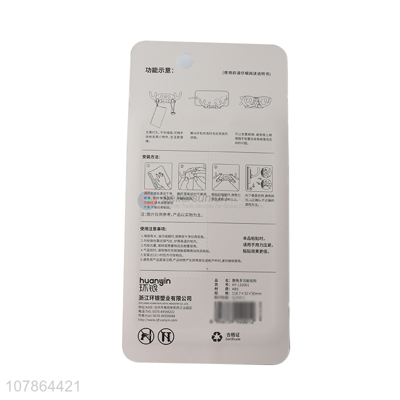 Hot selling multi-use antler shape sticky wall hook kitchen hook