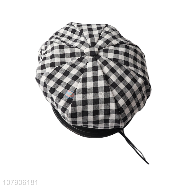 China products unisex autumn winter plaid beret hat checked beret cap