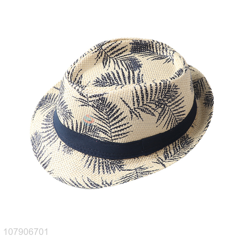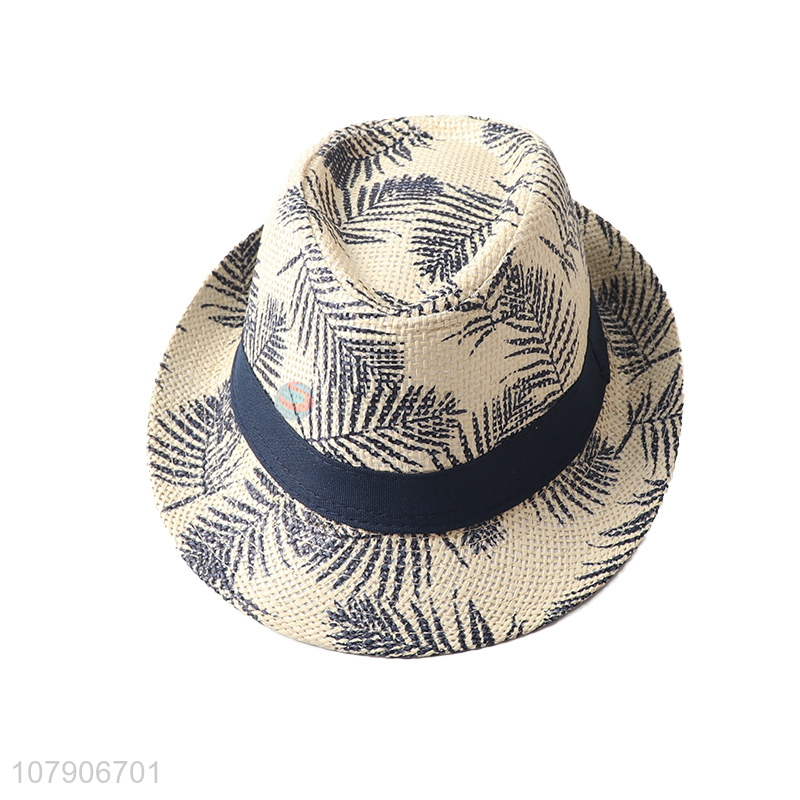 New arrival popular leaf printed straw sun hat fedora panama hats
