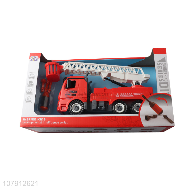High quality kids boys toy car diy assembled fire fighting truck toy