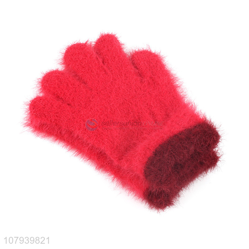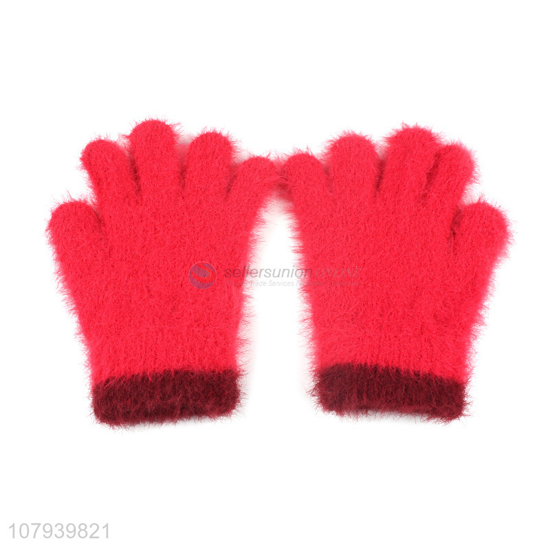 Factory Price Red Knitted Glove Ladies Winter Warm Gloves