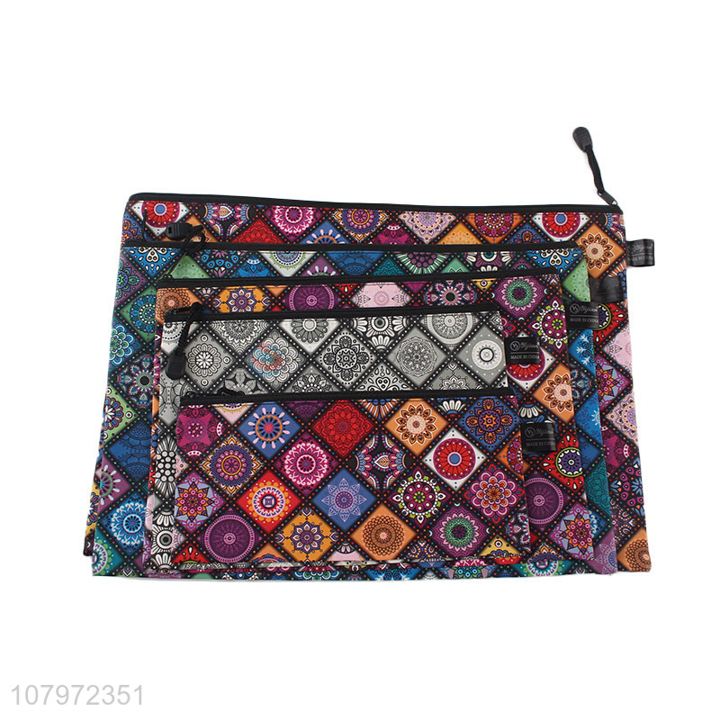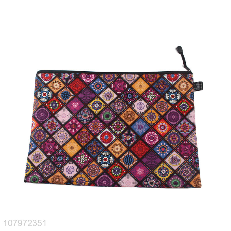 Fashion design portable polyester document storage bag with zipper