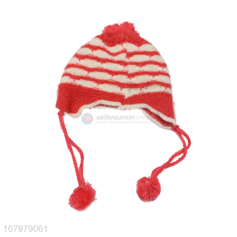 China imports kids winter fleece lined knitted earmuffs hat with pom pom