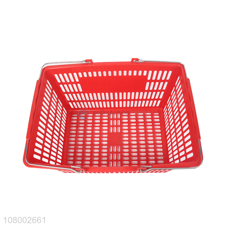 Factory price portable plastic shopping basket with galvanized double handles