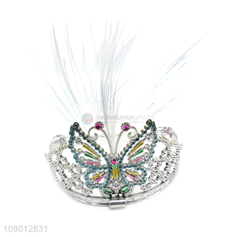 Yiwu factory delicate design plastic children tiaras with feather