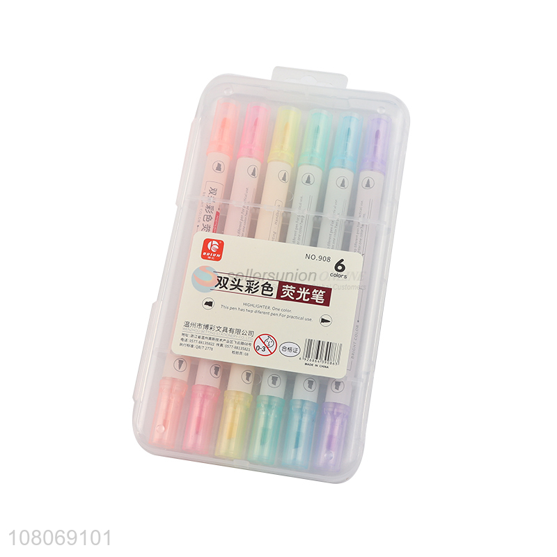 Online wholesale double-headed 6colors highlighter pen