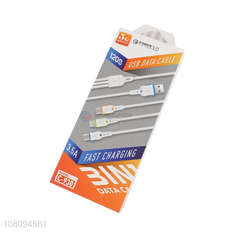 Custom 3 In 1 Fast Charging USB Data Cable For Cellphone