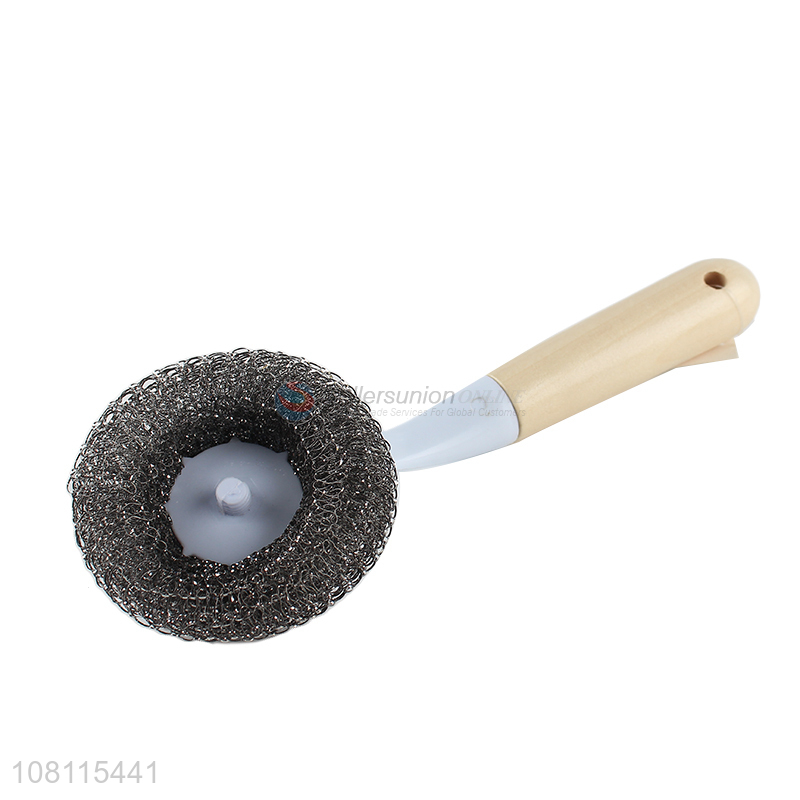 Best selling wooden handle stainless steel pot brush for kitchen