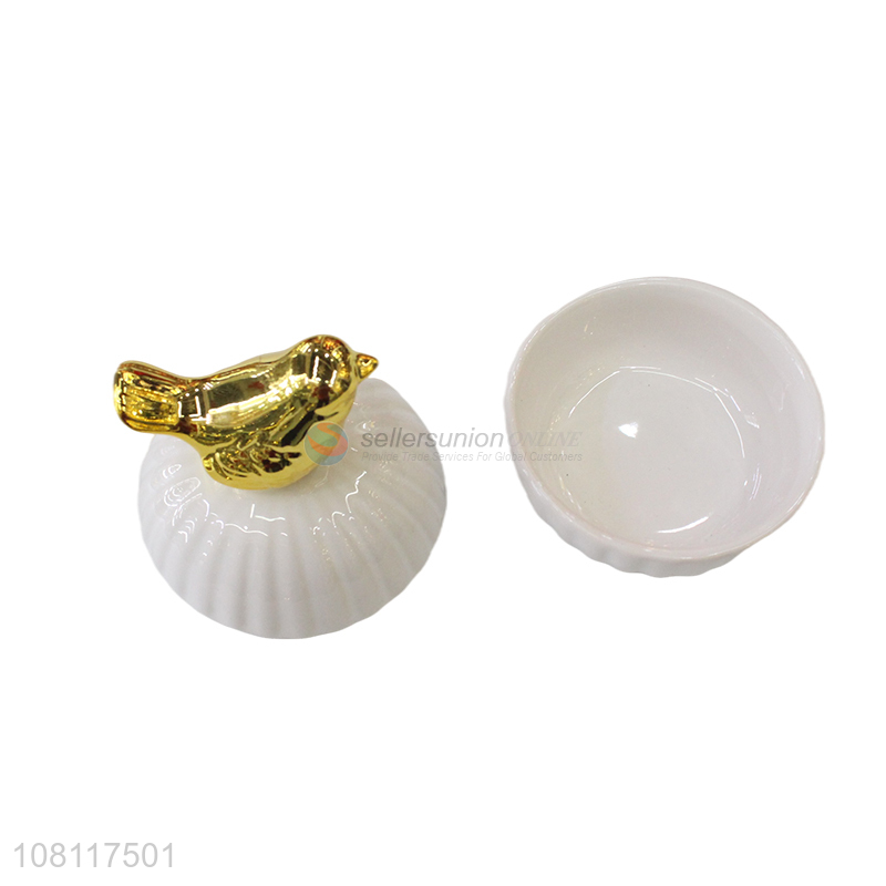 Factory price ceramic bird jewelry box for tabletop decoration
