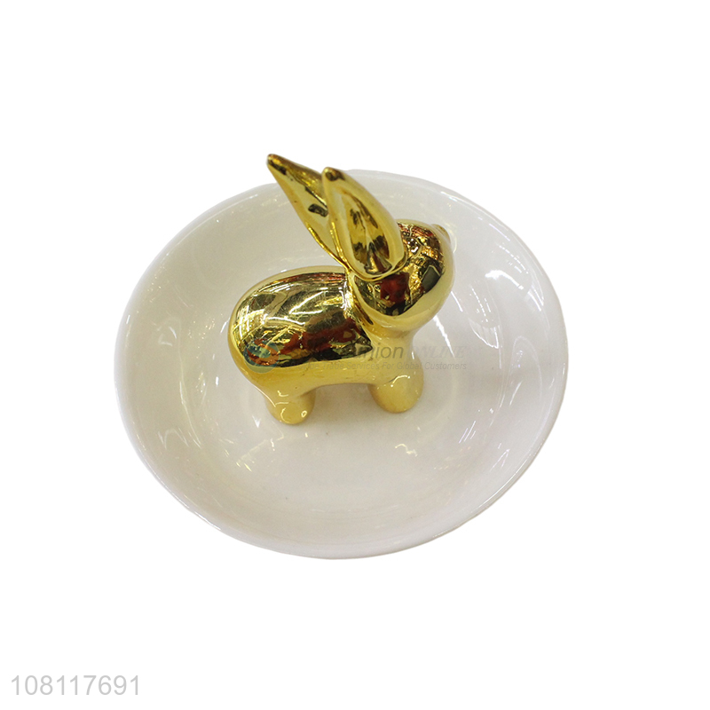 Hot sale ceramic rabbit ring holder dish jewelry tray for decor