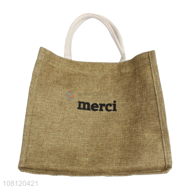 Hot selling imitated linen tote bag handbag burlap jute beach bag