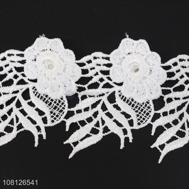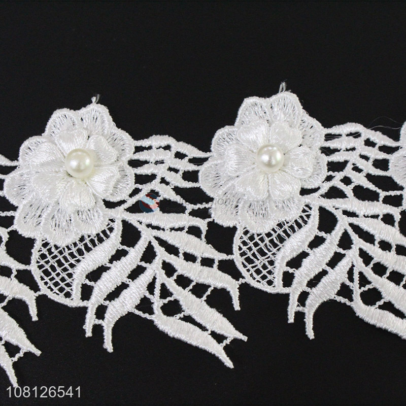 Low price white delicate garment decoration lace trim with pearl
