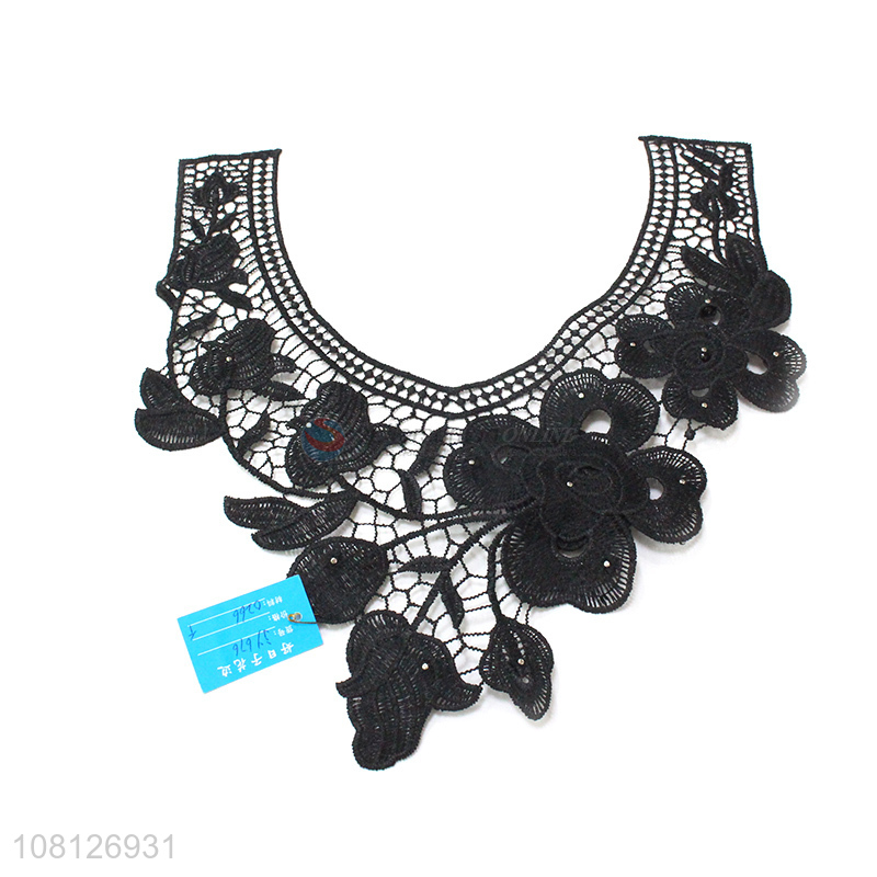 Factory direct sale black fashionable dress embroidery lace trim