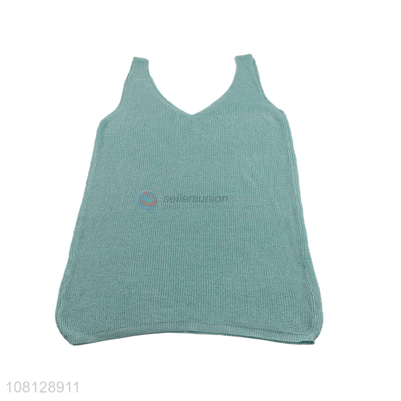 Hot selling v-neck women tank top hot drilling knitted vests