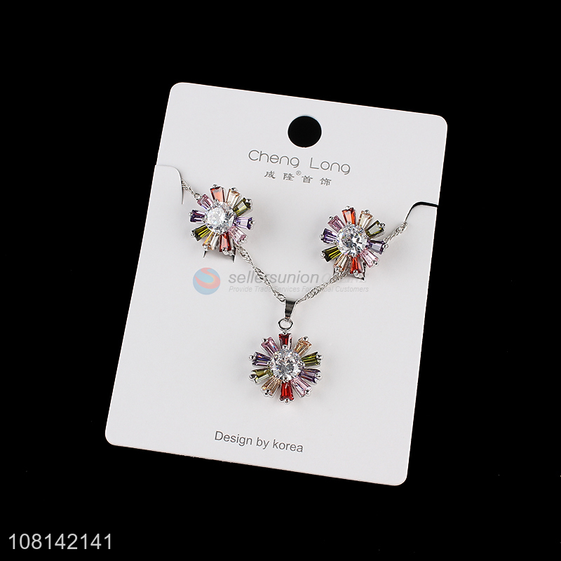 Wholesale rhinestone pendant necklace and earring set copper jewelry