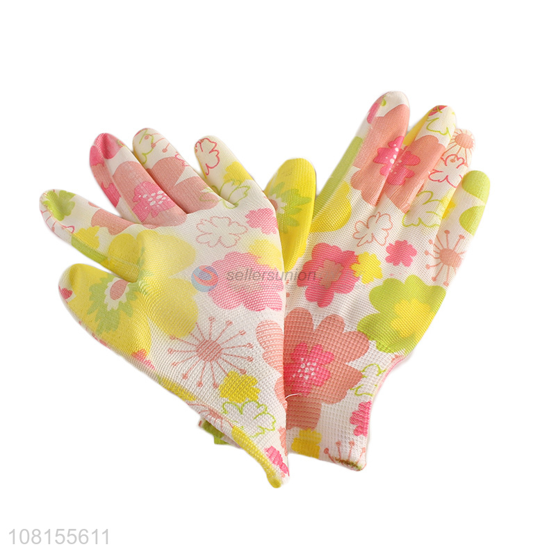 Hot selling flower printed pu coated garden work gloves