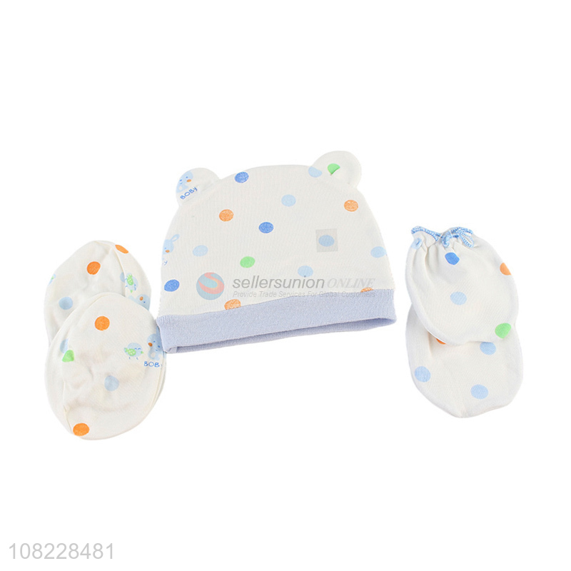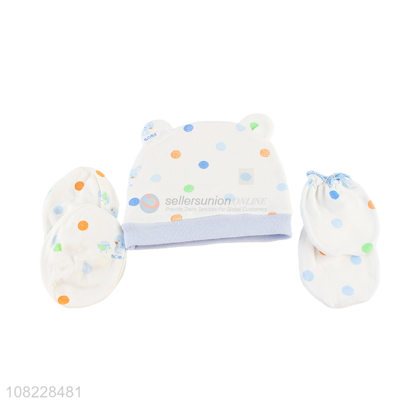 Wholesale baby beanie mittens foot covers set cotton infant supplies