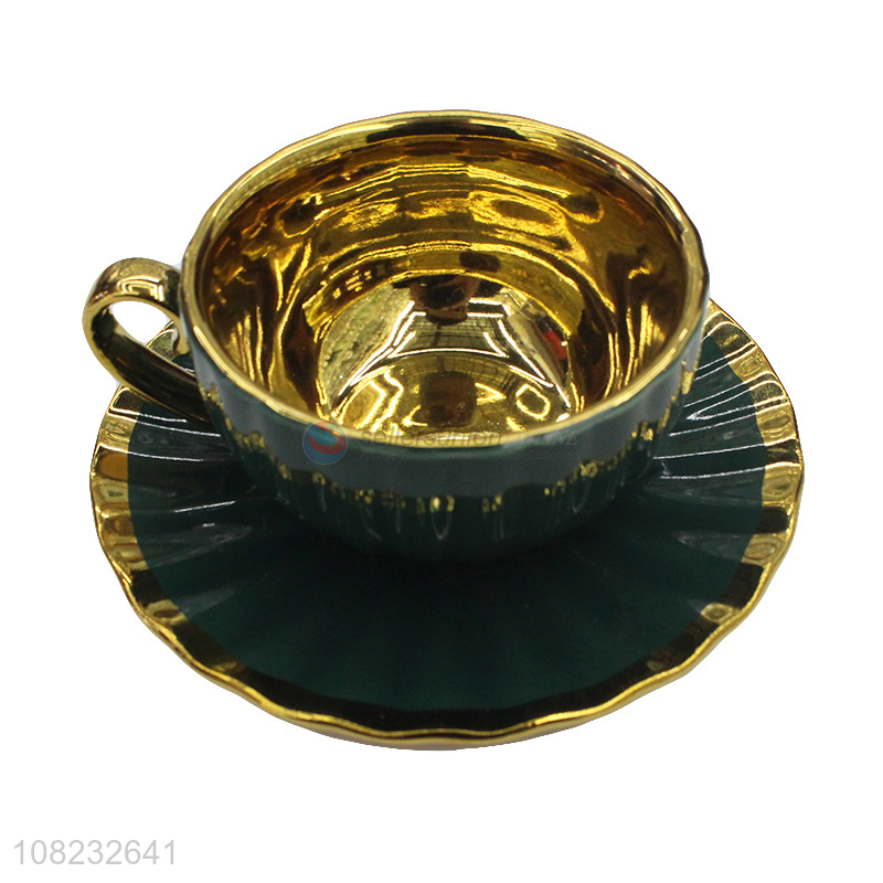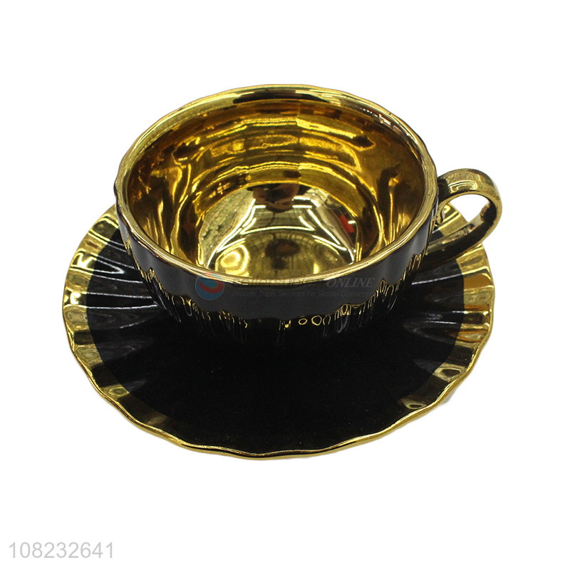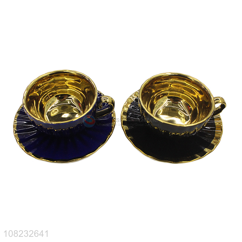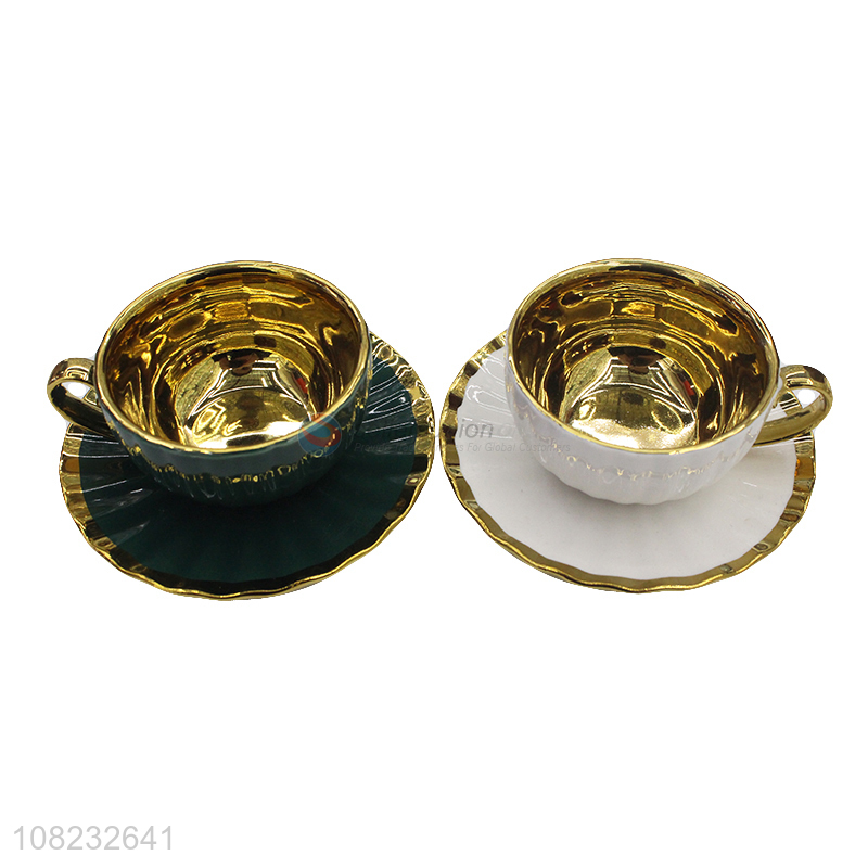 Wholesale art decor style golden brim ceramic coffee cups and saucers