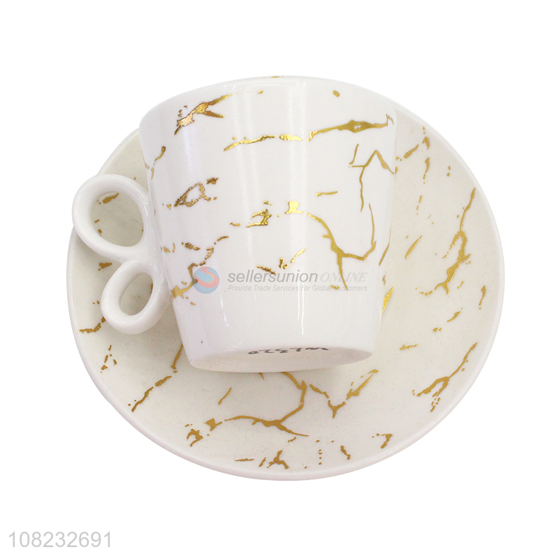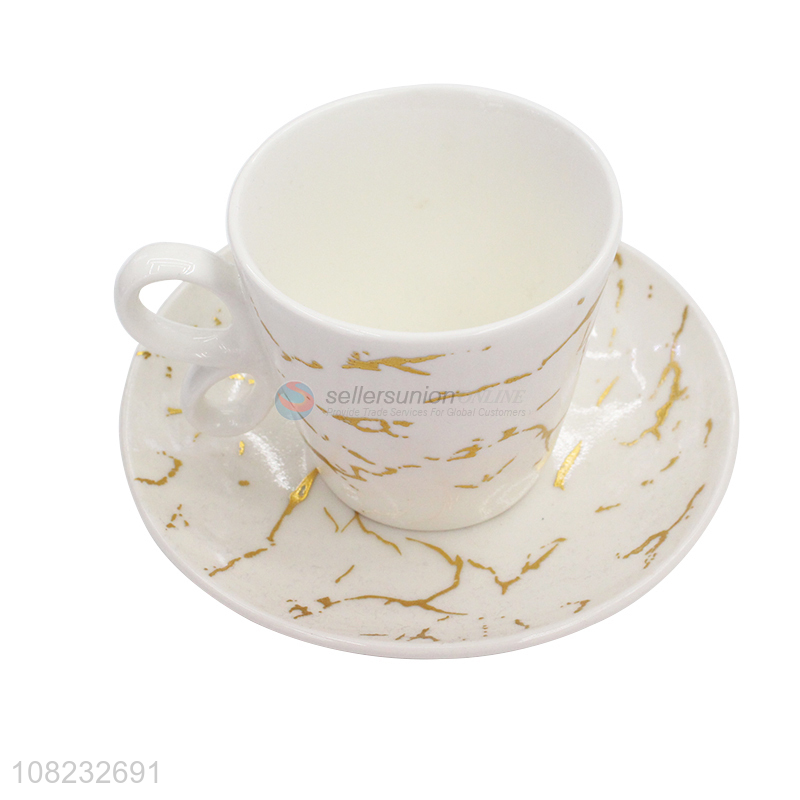 Factory supply household marble pattern ceramic cup and saucer set