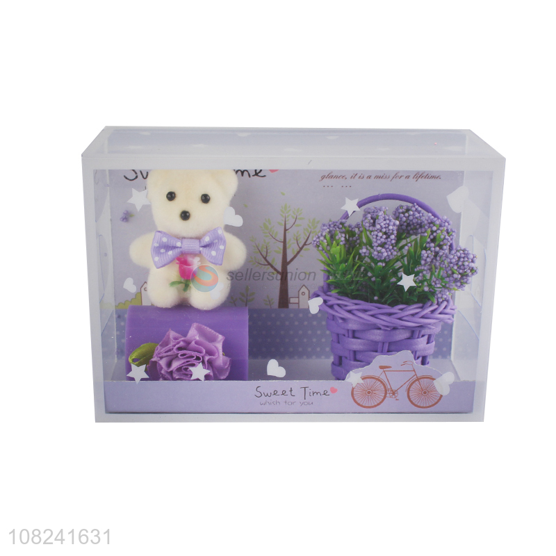 Factory direct sale new year gifts bear gift set with flower basket