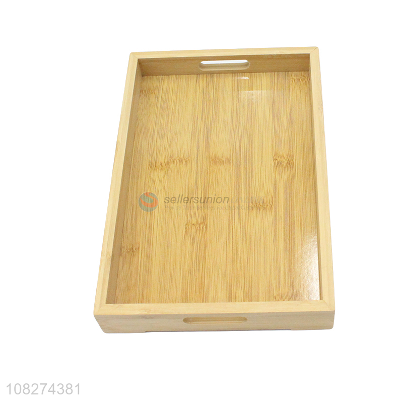 Hot selling hotel supplies rectangular bamboo serving tray with handles