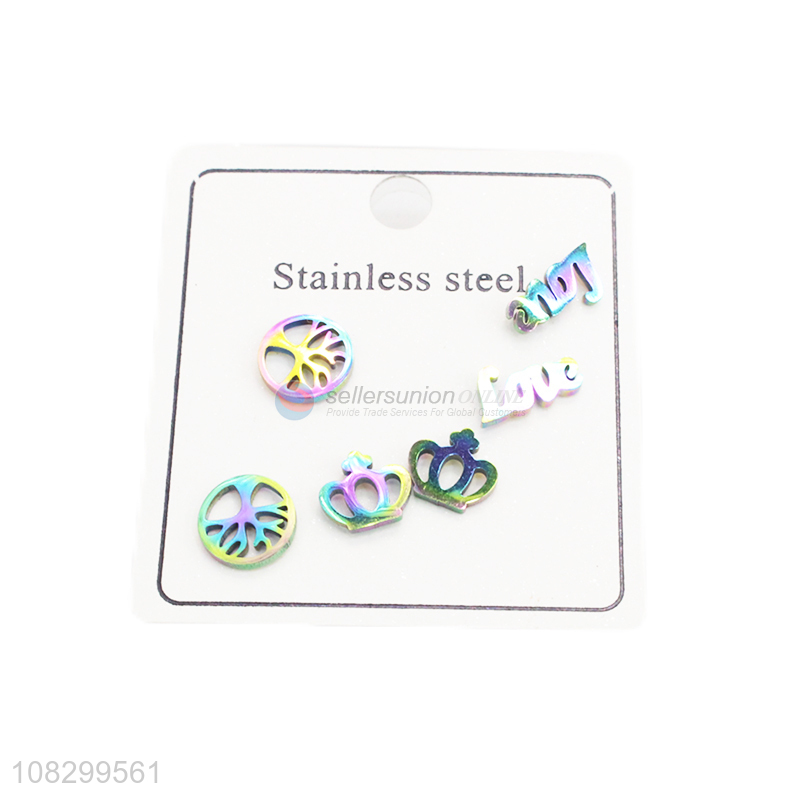 Hot Products 3 Pairs Stainless Steel Ear Studs For Ladies