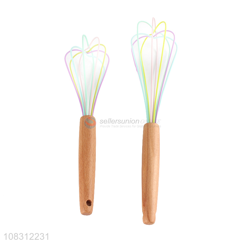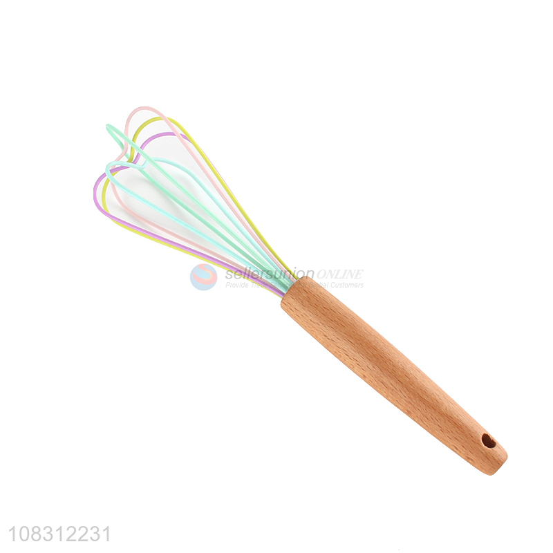 Yiwu direct sale wooden handle stainless steel egg whisk for kitchen