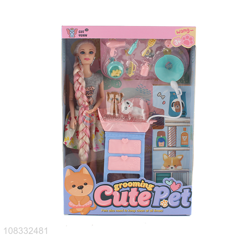 China imports 11 inch fashion doll and dog grooming bath set