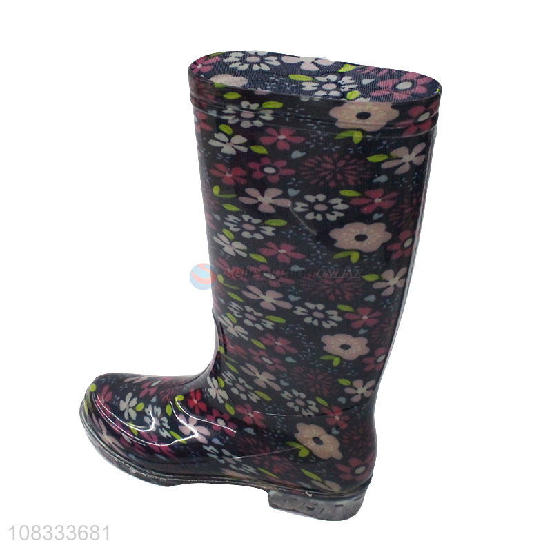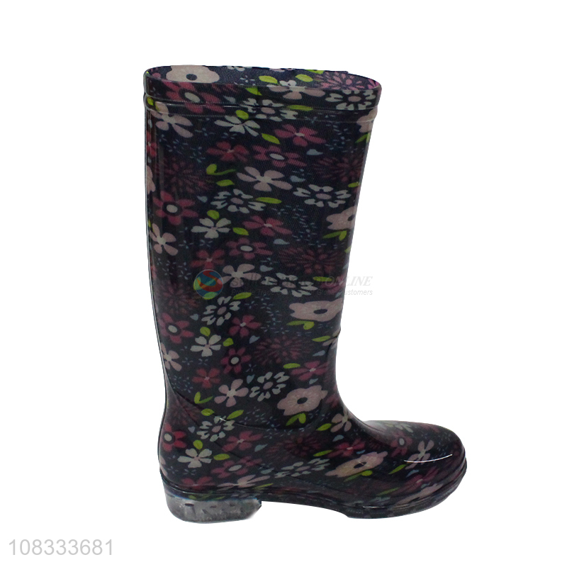 Hot selling women's knee high rain boots flower printed rain shoes