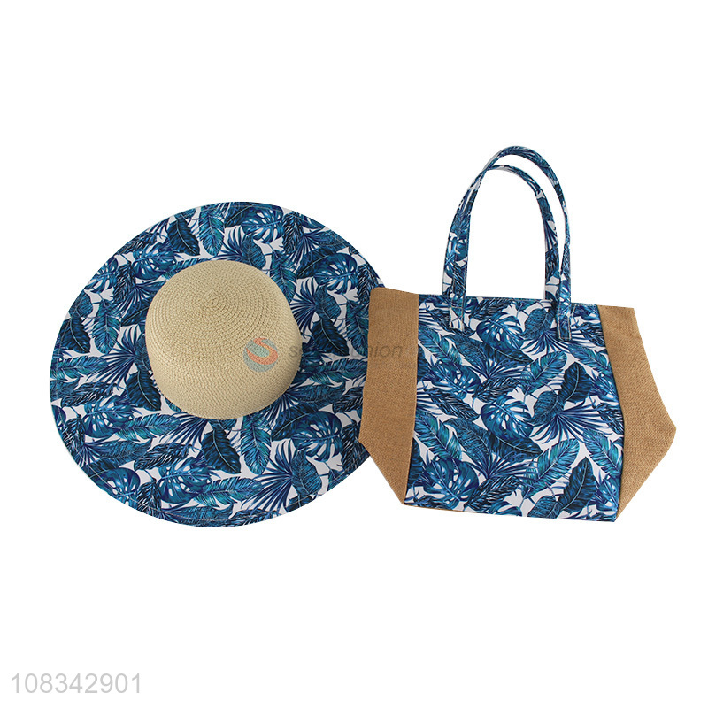 Custom Wide Brim Straw Hat With Beach Tote Bag Set