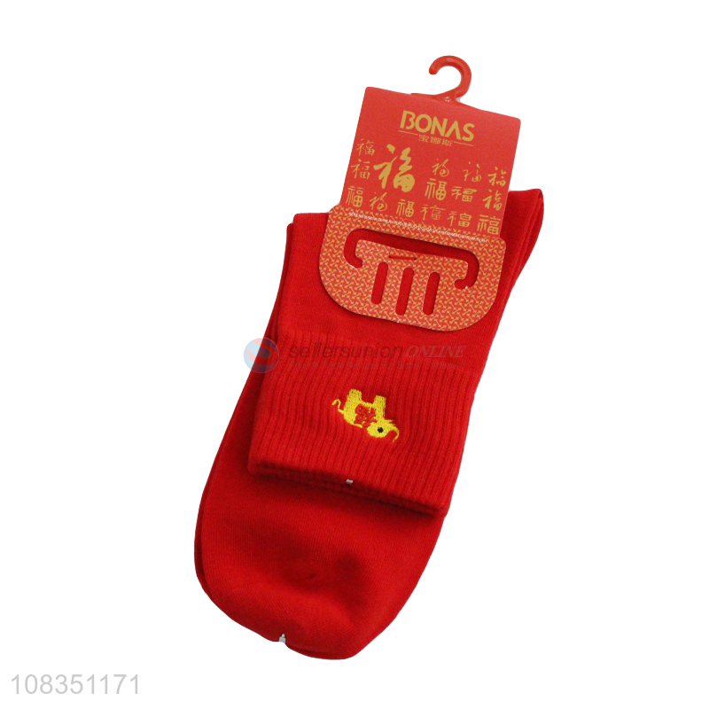 Wholesale men's red socks lucky crew socks for Chinese New Year